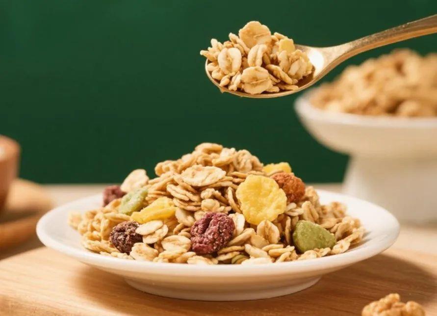 坚果麦片当中的营养价值相对较高,含有丰富的维生素、膳食纤维、蛋白质等营养成分,但同样的,坚果的油脂含量高、能量不容小觑。建议每日坚果摄入量控制在约10-20克。